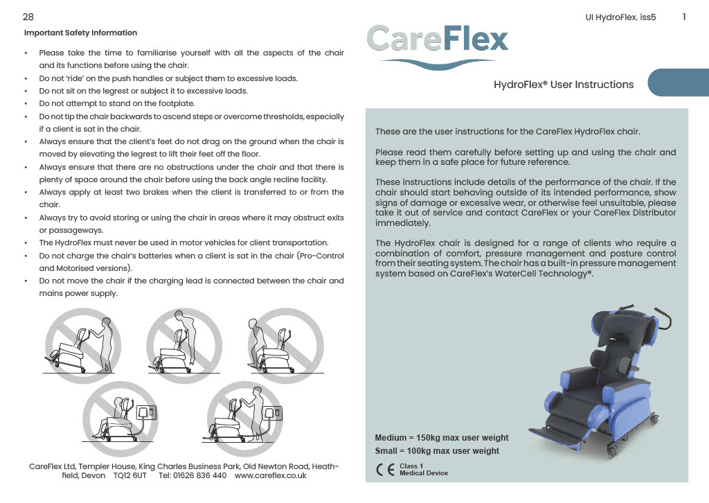 Specialist Wards (Stroke Rehabilitation, Brain/Spinal Injury, ITU): The HydroFlex is ideal for specialist wards, such as stroke rehabilitation and ITU, where it meets the unique needs of recovering patients. Its adjustability allows healthcare professionals to customise support for each individual, facilitating effective rehabilitation and ensuring comfort during extended use. This chair is essential for promoting recovery and improving patient outcomes in specialised care settings.