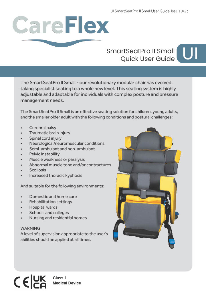 Designed for versatility, this chair is ideal for various settings, including homes, schools, care facilities, and hospitals. Its robust construction ensures long-lasting durability, complemented by a Lifetime Frame Warranty for added peace of mind. Whether operated manually or via battery-controlled motors, the SmartSeat Pro II enhances the quality of life for users and simplifies care for professionals.
