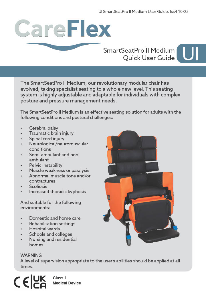 A highly adjustable specialist seating system for individuals with complex postural management and pressure care needs.