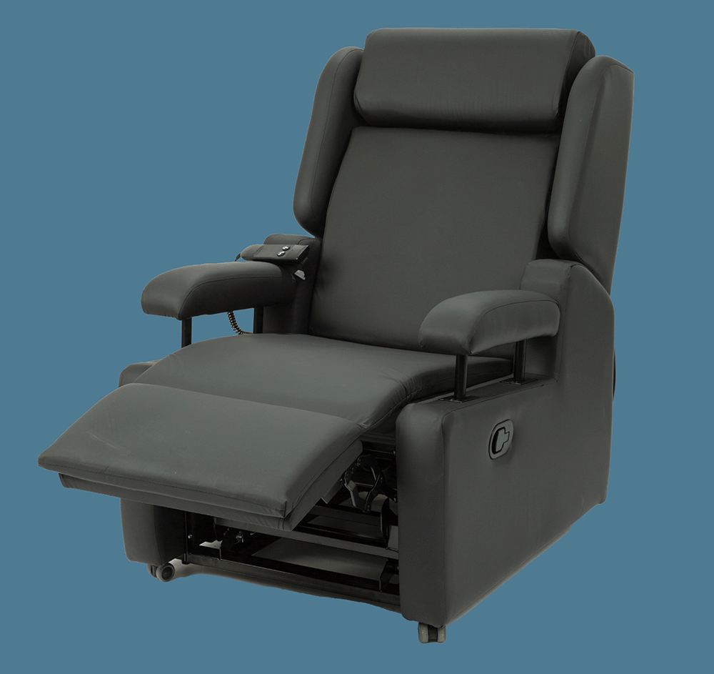 The Kingsbridge has been designed and developed using a Dual motor Trendelenburg mechanism to allow the user to recline the chair into a sleeping position. With a reclining back of 85 degrees, the user can achieve a lay flat position.Â